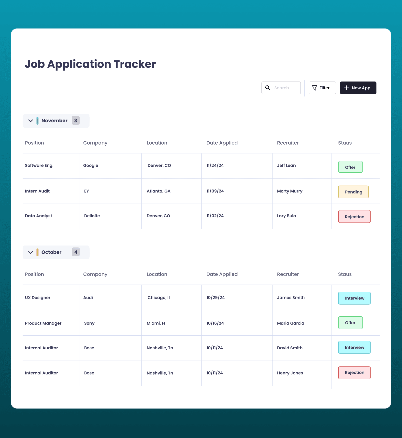 Losing track of application details (dates, recruiter names, or statuses).